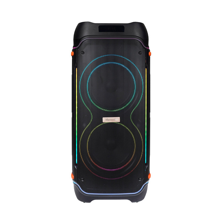 2 ساب ووفر 10 اینچی پشتیبانی از اتصال بلوتوث، USB، کارت حافظه، AUX، گیتار و میکروفون قابلیت TWS برای اتصال بیسیم دو اسپیکر طراحی قابل حمل با نورپردازی RGB دور بلندگو