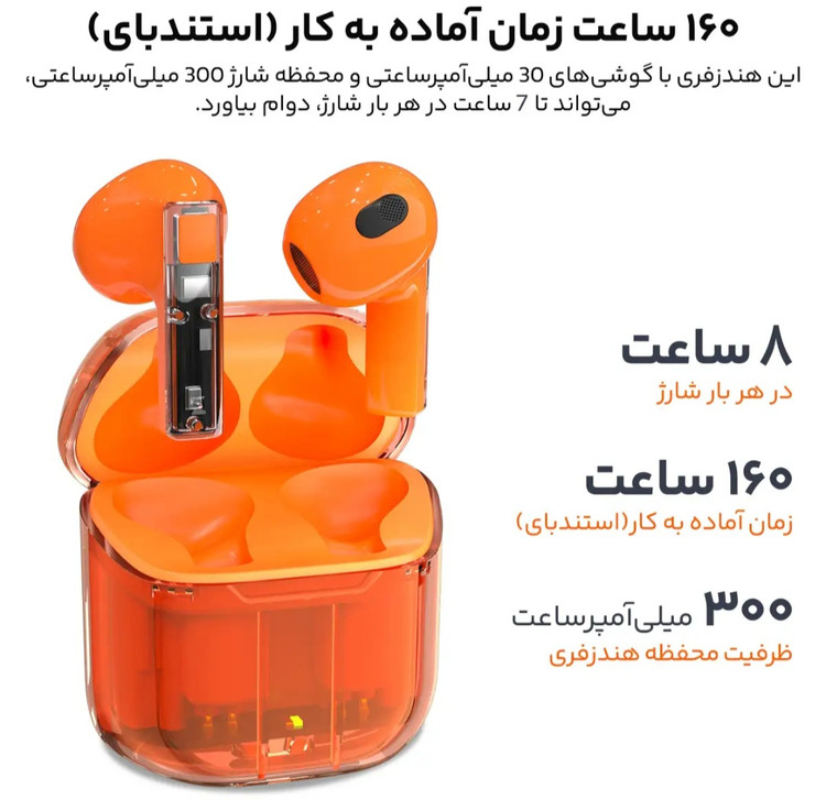 عمر باتری هدفون در حالت استندبای : 160 ساعت