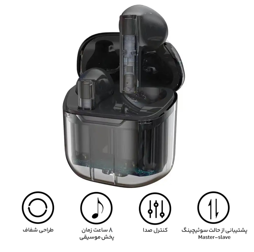 هدفون بلوتوثی مدل HW80 با ظاهر زیبا، ظریف و بدنه شفاف محصولی بسیار منحصر به فرد و یک هدیه عالی برای نزدیکانتان خواهد بود. هدفون های True Wireless Stereo که HW80 نیز یکی از آنها می باشد، می توانند کیفیت صدای فوق العادهای را با باس عمیق و تریبل شفاف تولید کنند. صدای استریو Hi-Fi و تماس های واضح، گوشی های بلوتوثی بی سیم با 3 میکروفون و بلندگوهای 13 میلی متری بزرگ، همچنین با بیس قوی، شفاف، متعادل و عملکرد سه برابر برای بازتولید زنده صدای دریافتی و ارسالی شماست. هدفون بی سیم مدل HW80 دارای فناوری حذف نویز CVC8.0 و ENC همراه با میکروفون سه گانه HD می باشد که موسیقی آرام و تماس های واضح حتی در محیط های پر سر و صدا را برای دو طرف مکالمه فراهم می کند. این هندزفری دارای 300 میلی آمپر ساعت ظرفیت باتری محفظه و 30 میلی آمپر ساعت ظرفیت باتری هرکدام از گوشی ها می باشد که تا 160 ساعت زمان آماده به کار(استندبای) خواهد داشت و زمان مکالمه و پخش موسیقی آن نزدیک به 8 ساعت با هر بار شارژ خواهد بود. هدفون بی سیم HW80 دارای قابلیت سوئیچ MASTER-SLAVE است که با این قابلیت می توانید بطور جداگانه از هر گوشی بعنوان گوشی اصلی استفاده کنید. اسپیکر گوشی های این هندزفری دارای دیافراگم کامپوزیتی ترکیبی PEEK+TPU قطر 6 میلی متری و همچنین سیم های مسی بدون هرگونه ناخالصی و اکسیژن می باشد. بر همین اساس خروجی صدای گوشی ها نیز بسیار واضح، شفاف، متعادل و دارای بالانس بسیار مناسب و استاندارد است. و در نهایت طراحی انحنادار کویل و ساختار با کیفیت اجزای آکوستیک این هندزفری باعث می شود تا صدایی غنی و خالص را تجربه کنید.