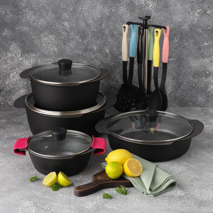 ویژگی ظرف پخت در با سوپاپ تخلیه بخار تعداد پارچه ۱۷ پارچه ساختار بدنه آلومینیوم جنس روکش گرانیت