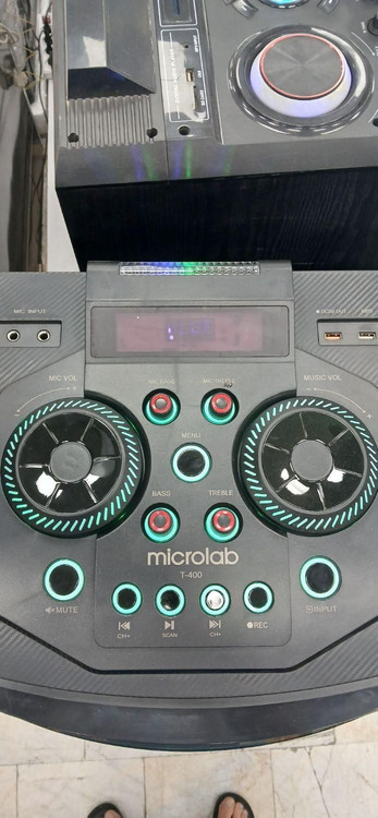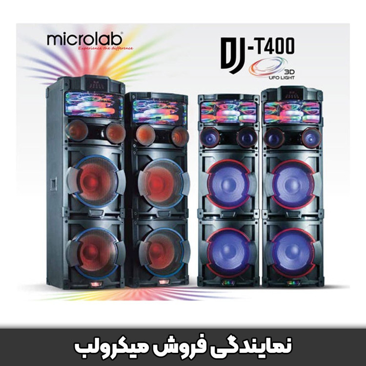 اسپیکر میکرولب مدل microlab DJ-T400 - فروشگاه باند ایران 1 اسپیکر میکرولب مدل DJ-T400 یک اسپیکر خانگی دیجی است که با قابلیتهای متنوع و طراحی جذاب، تجربهی صوتی حرفهای و سرگرمکنندهای را ارائه میدهد. این اسپیکر دارای ۴ ساب ووفر ۱۲ اینچی، ۲ میدرنج ۴ اینچی و ۲ تیوتر ۲.۵ اینچی است و توان خروجی ۱۹۰ وات RMS دارد